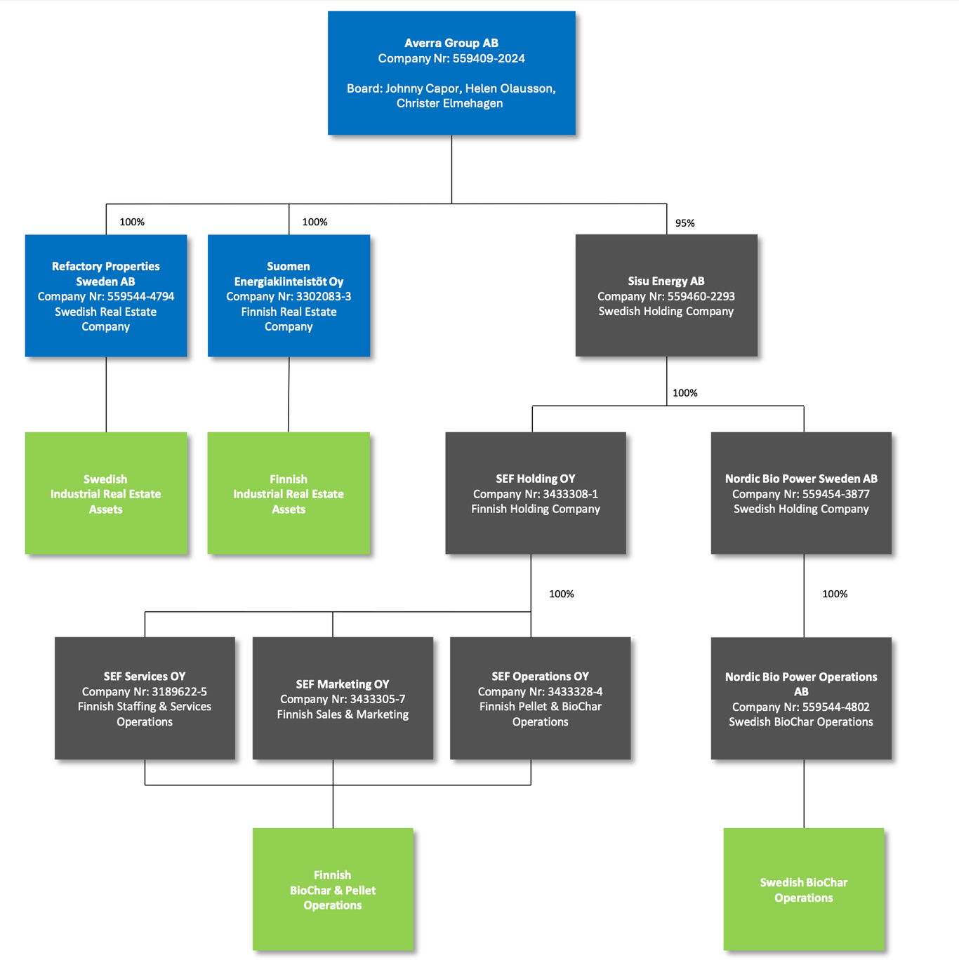 Averra Group is a Nordic industrial platform covering multiple sectors, including renewable energy, circular economy, and sustainable industrial real estate.
